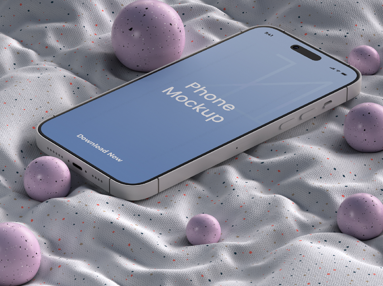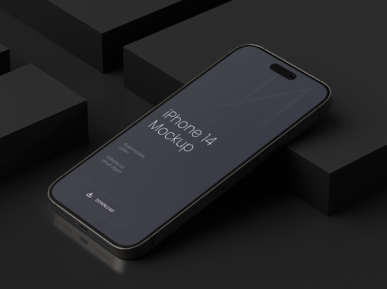 موکاپ های PSD قابل ویرایش برای صفحه نمایش آیفون 14 در پس زمینه های مختلف