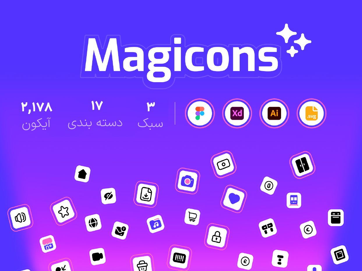 مجموعه آیکون Magicons به زیبایی طراحی شده است تا به شما در سرعت بخشیدن به گردش کار طراحی کمک کند.