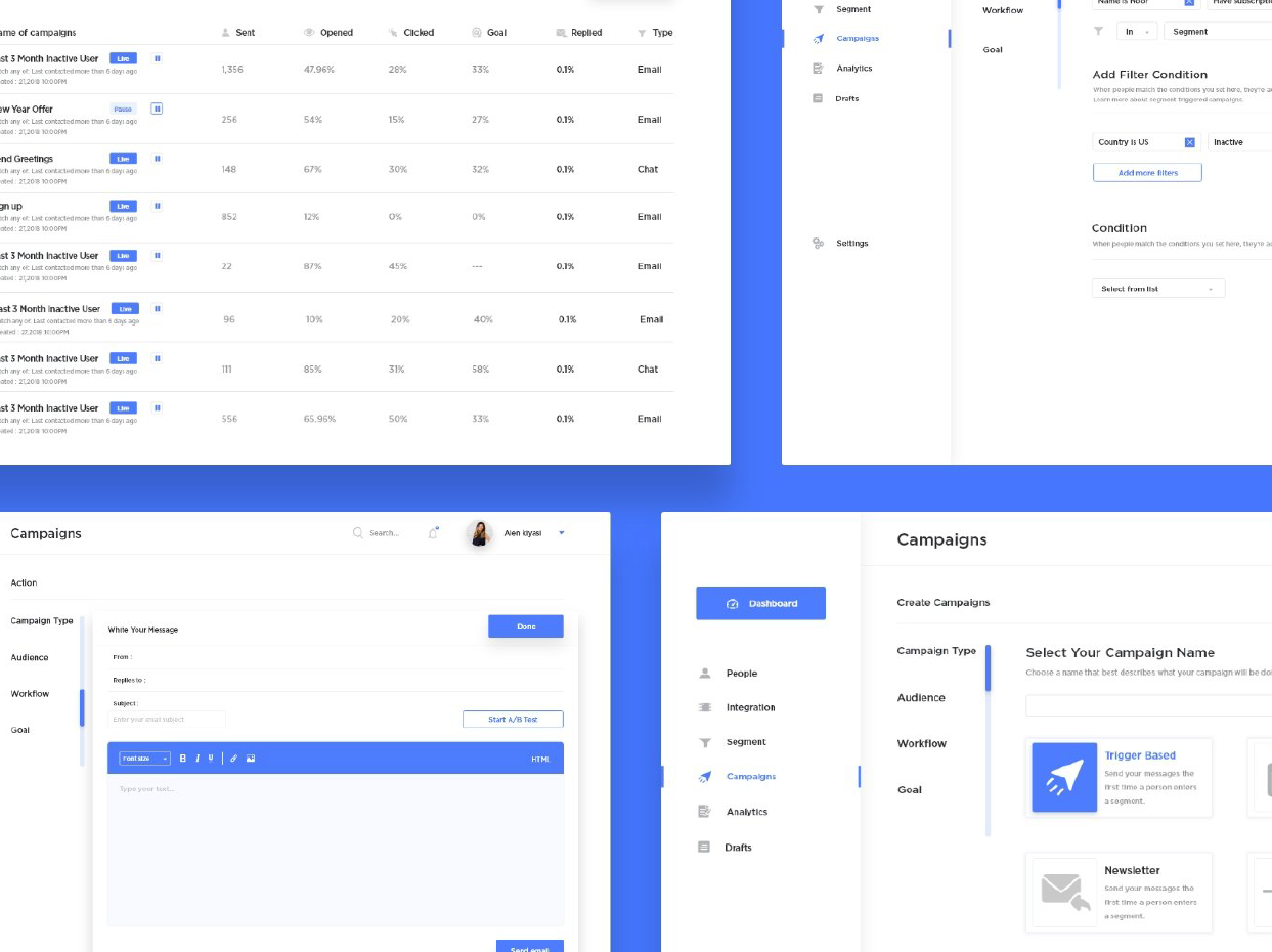 رابط کاربری داشبورد پیامرسانی تجاری برای Figma و Adobe XD