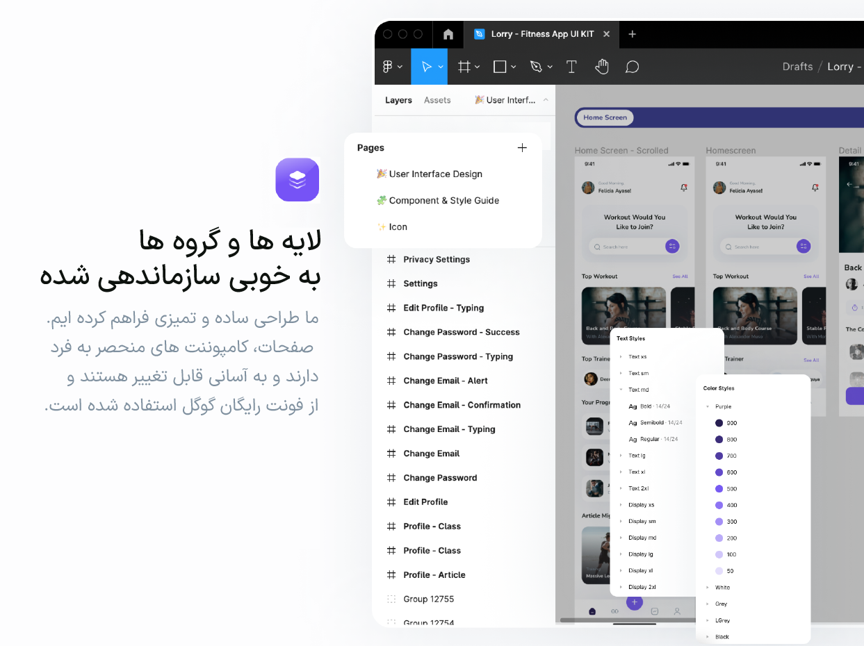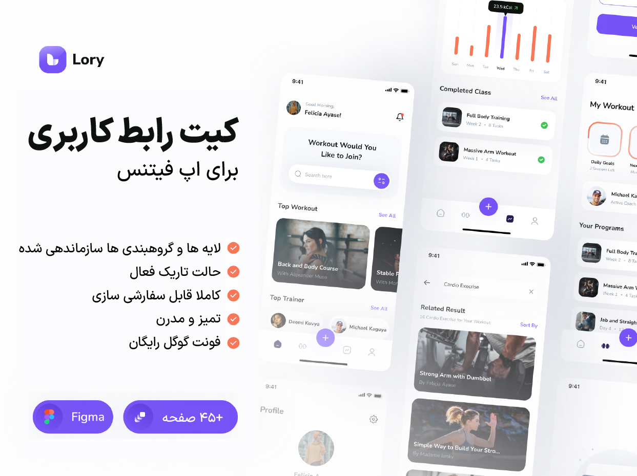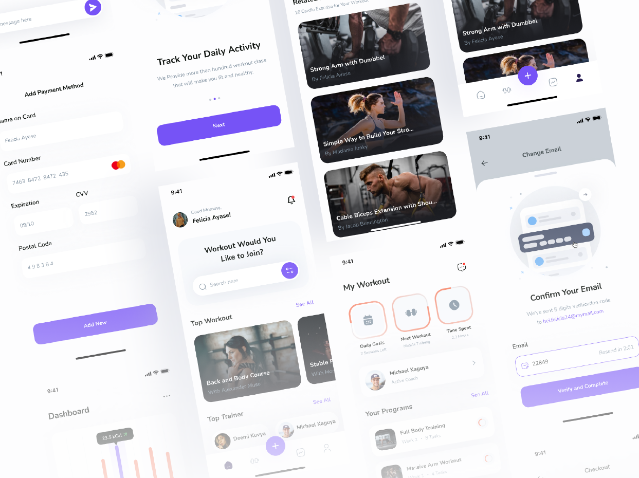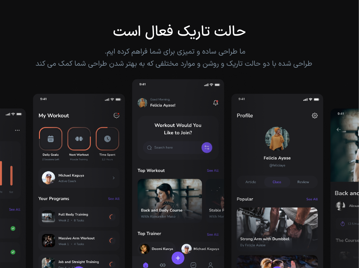 کیت رابط کاربری اپلیکیشن تناسب اندام و ورزش برای موبایل