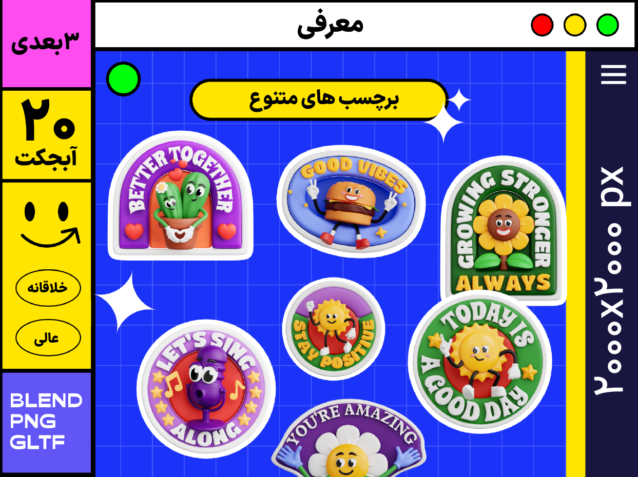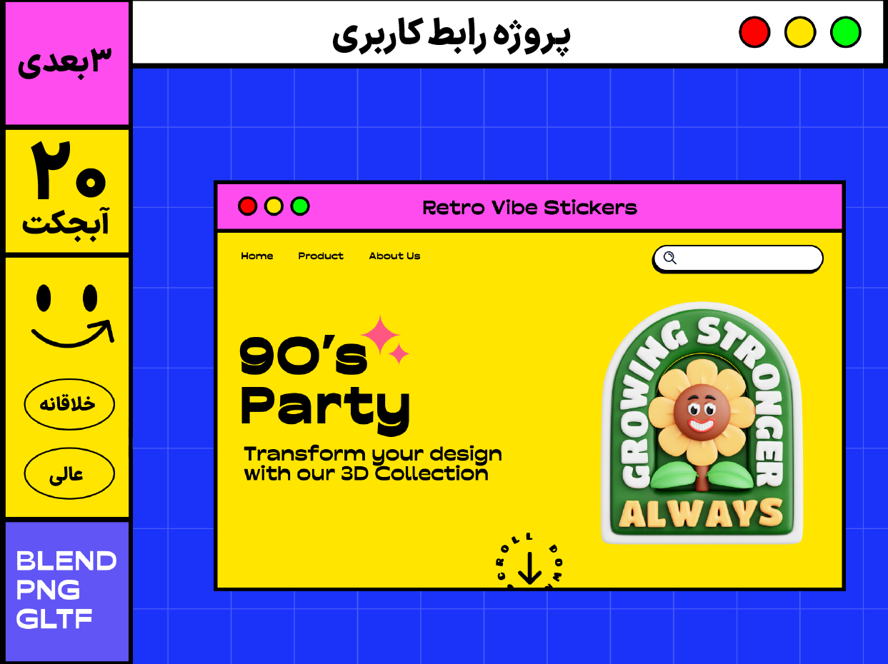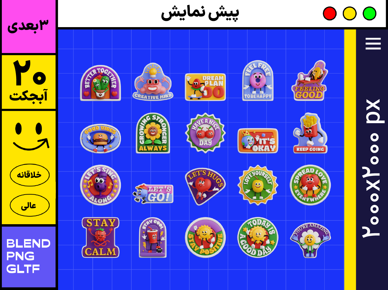 مجموعه آیکون های سه بعدی استیکرهای Retro
