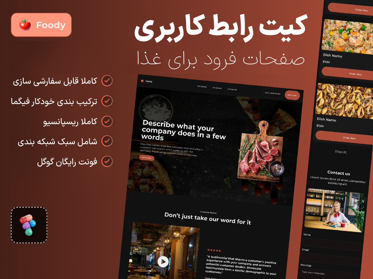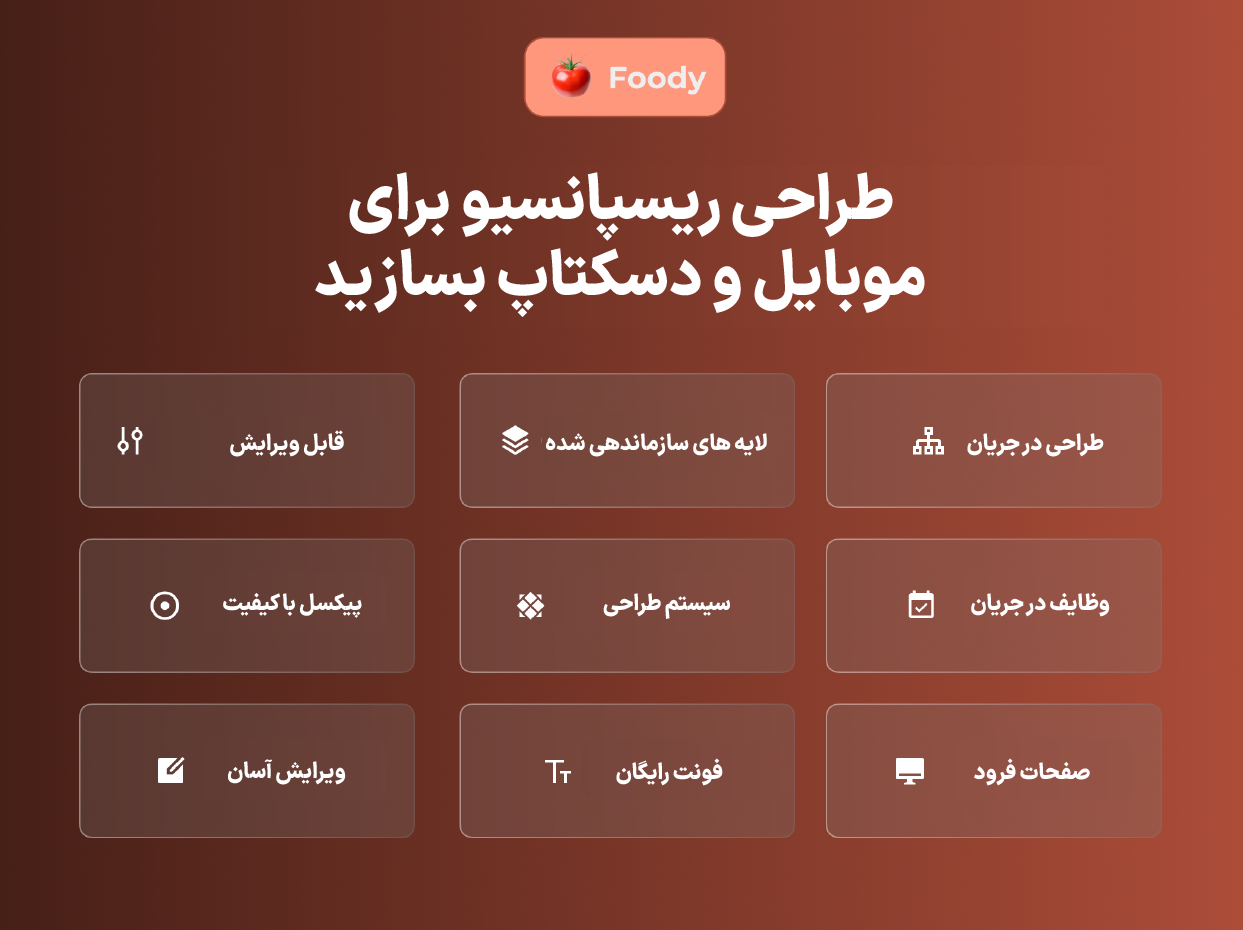 صفحه فرود برای دسکتاپ و موبایل برای اپلیکیشن و وبسایت های غذا و رستوران