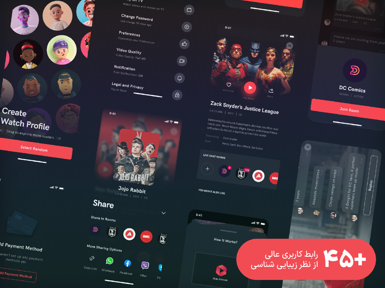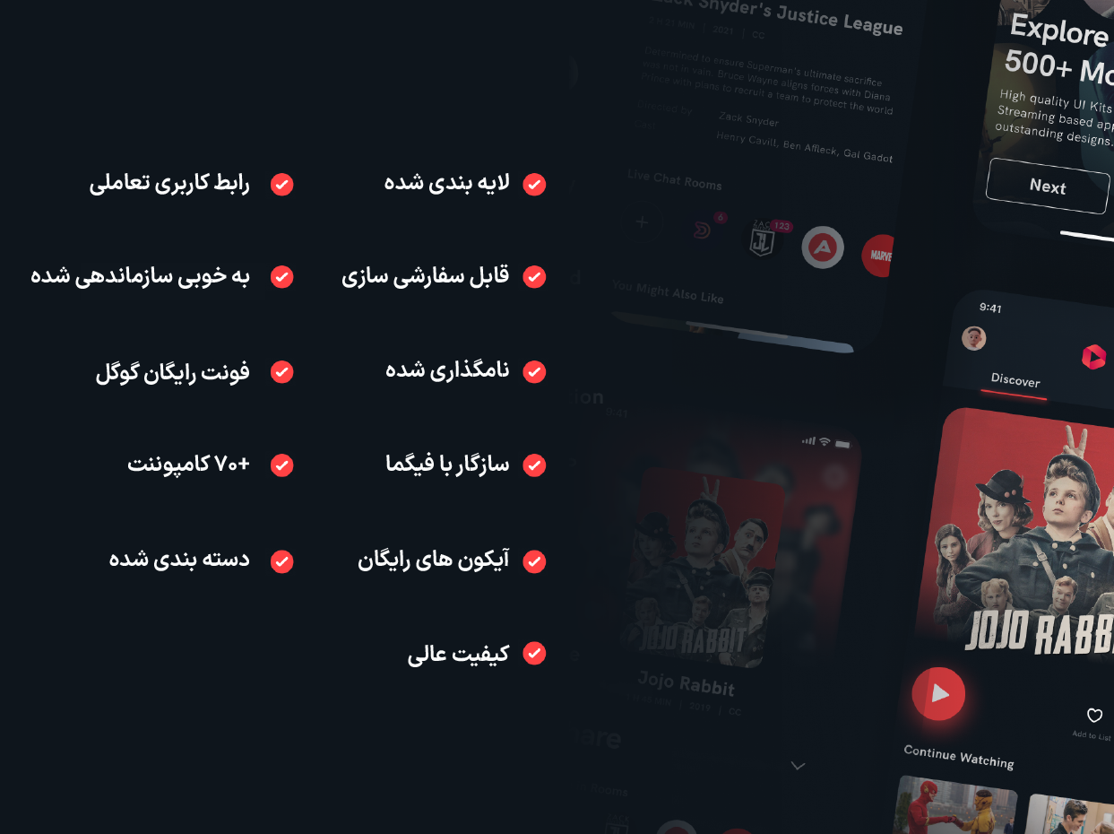 کیت رابط کاربری برای اپلیکیشن استریم ویدئو و فیلم