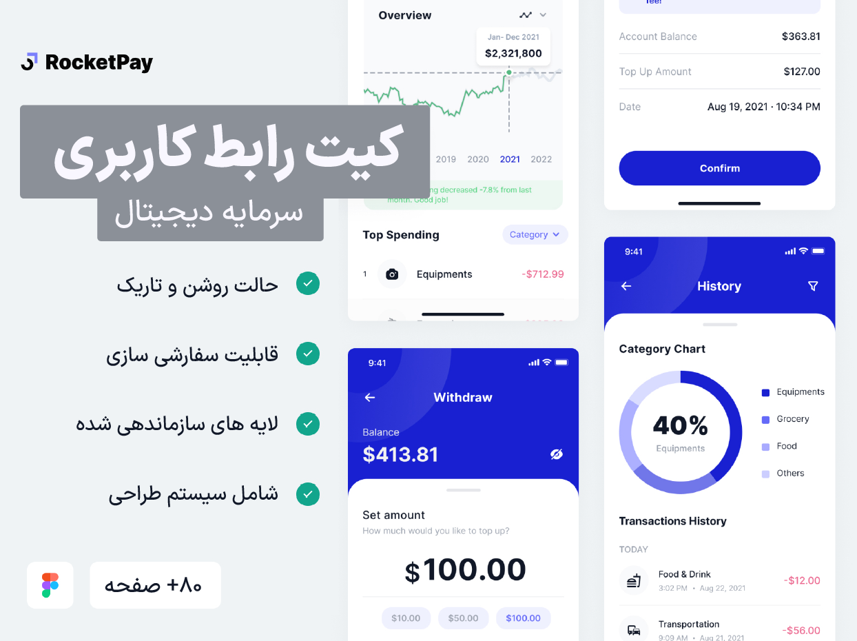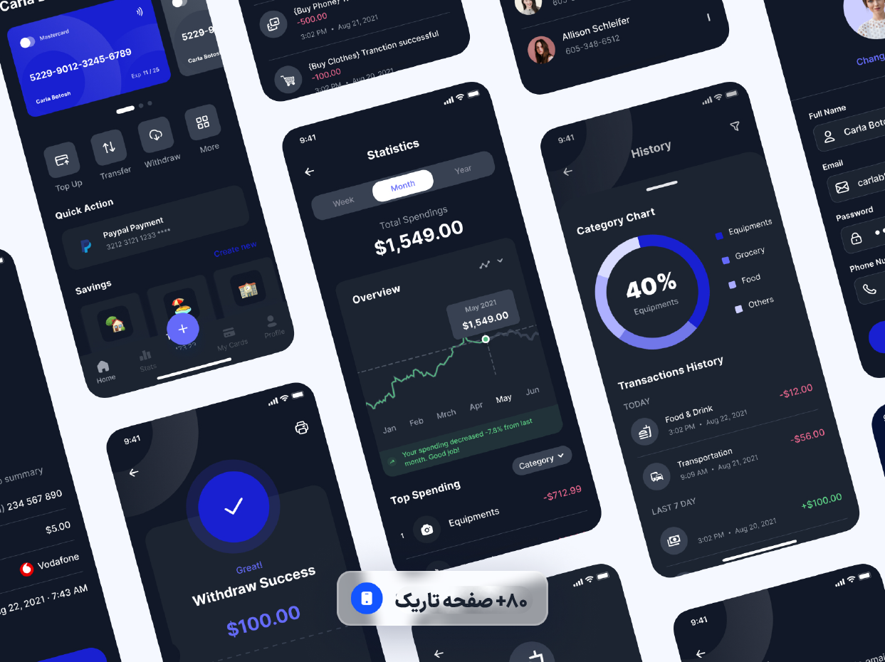 کیت رابط کاربری برنامهریزی مالی ممتاز و کیف پول دیجیتال