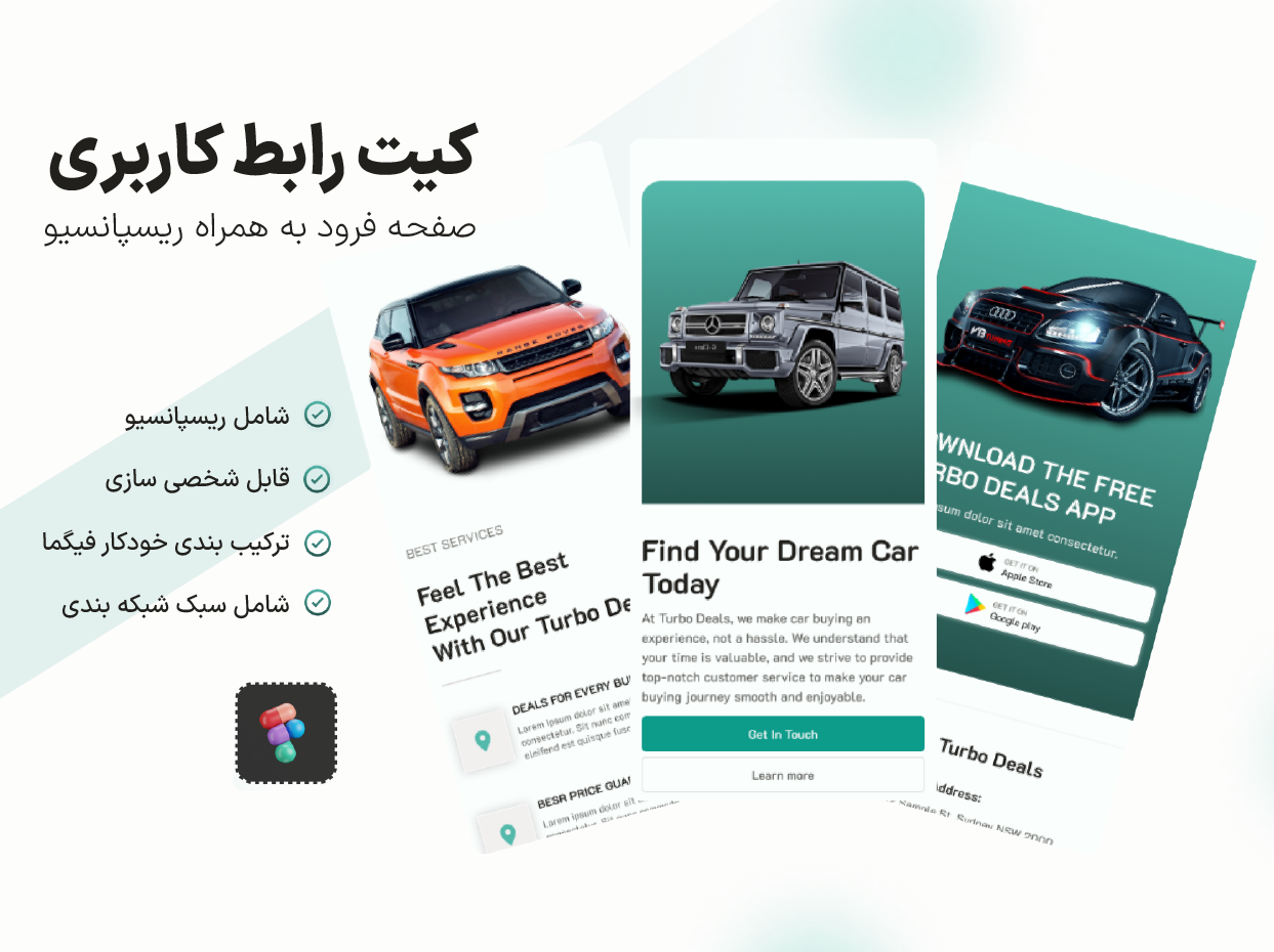 کیت رابط کاربری صفحه فرود معاملات ماشین برای دسکتاپ و موبایل