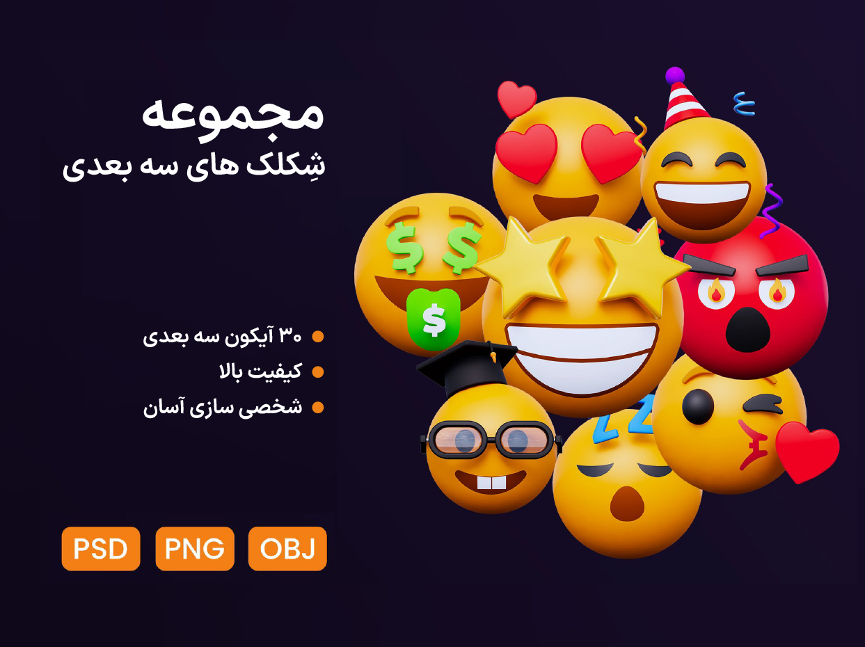 کیت تصویرسازی و آیکون اموجی سه بعدی