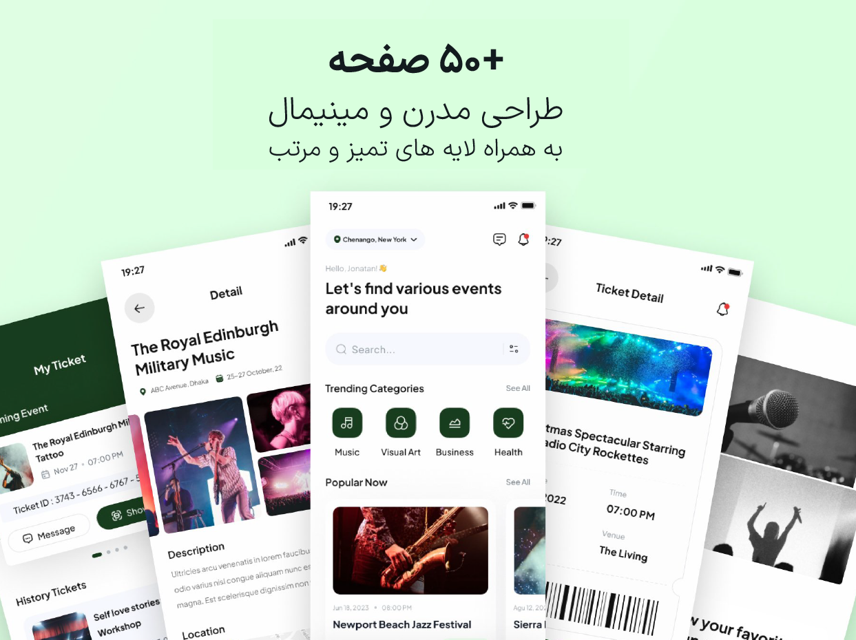 کیت رابط کاربری موبایل برای رزرو رویداد و همایش