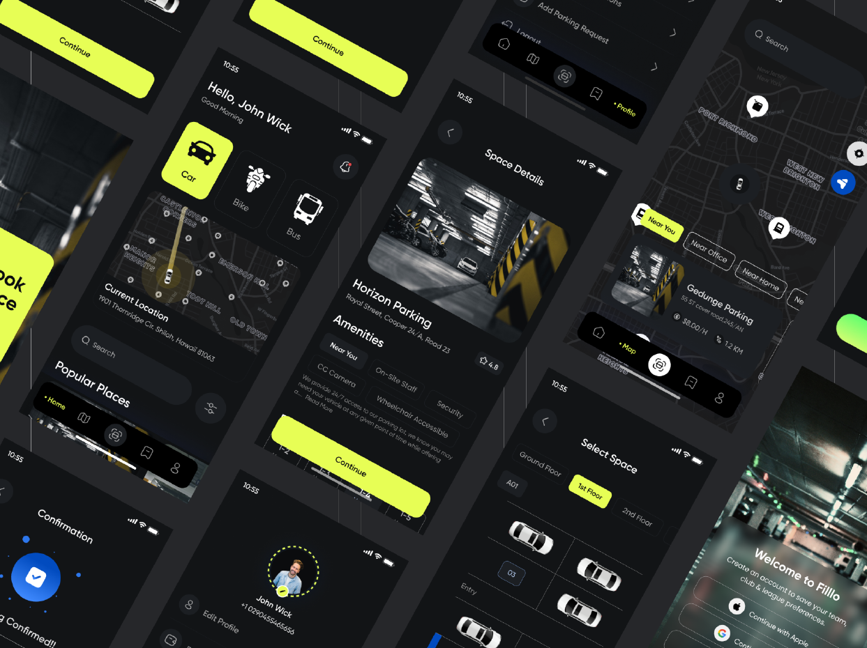 Filllo Parking Space Booking App UI Kit