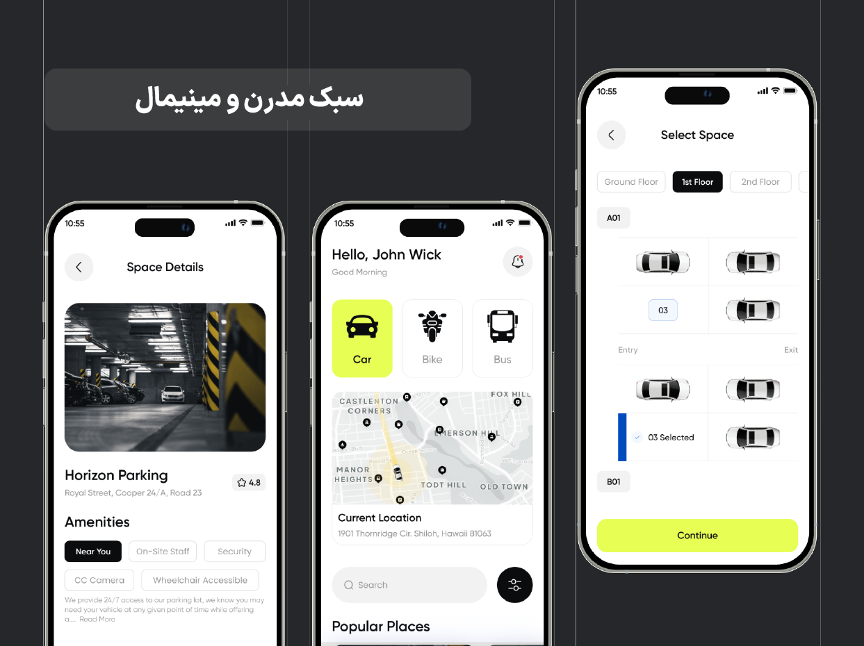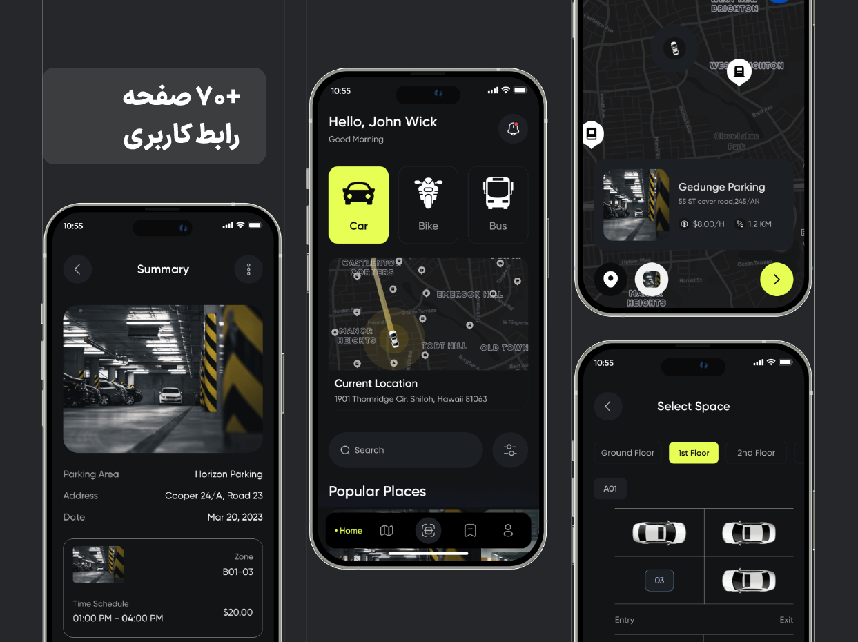 کیت رابط کاربری برای اپلیکیشن رزرو پارکینگ