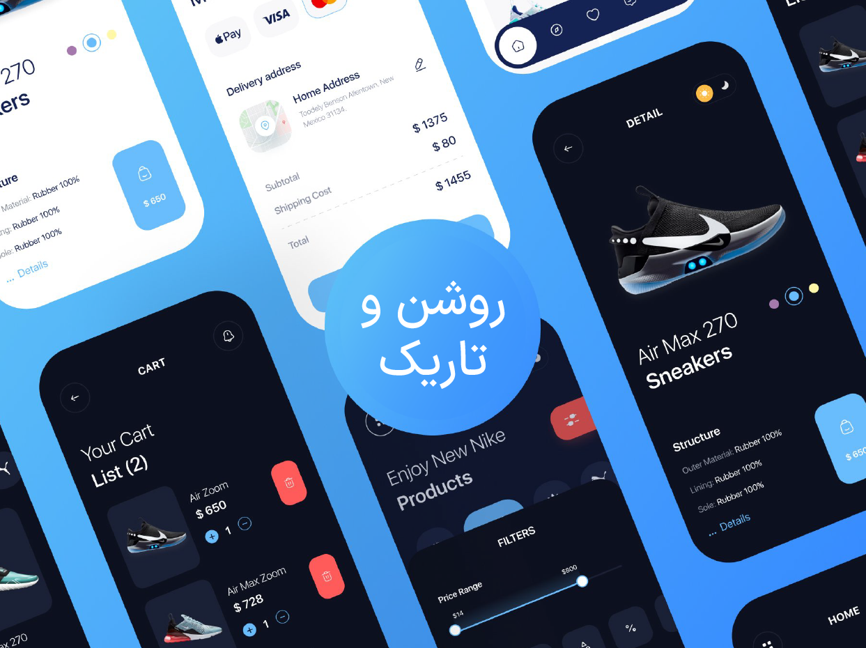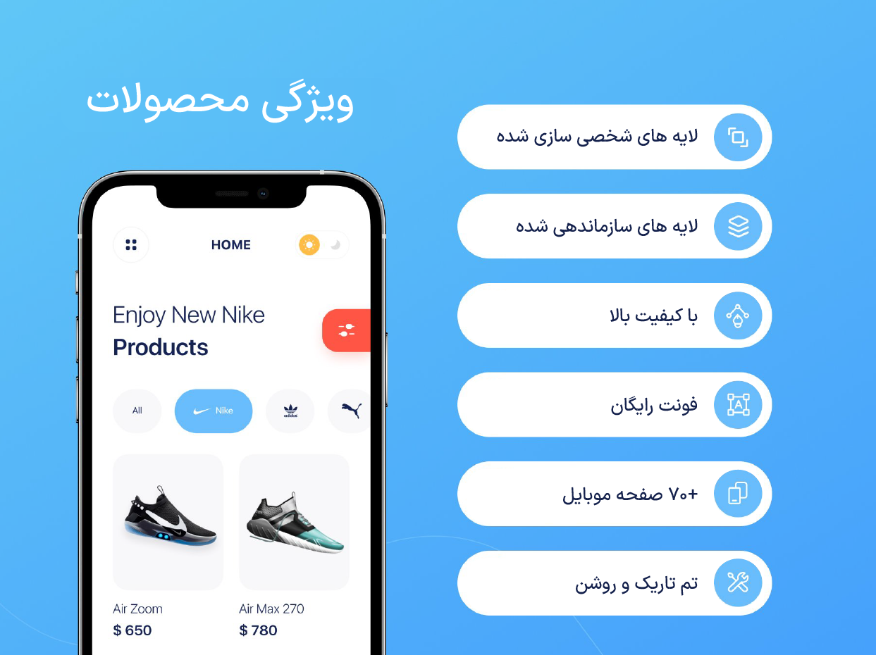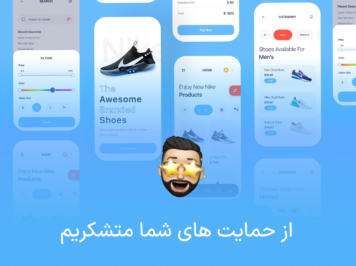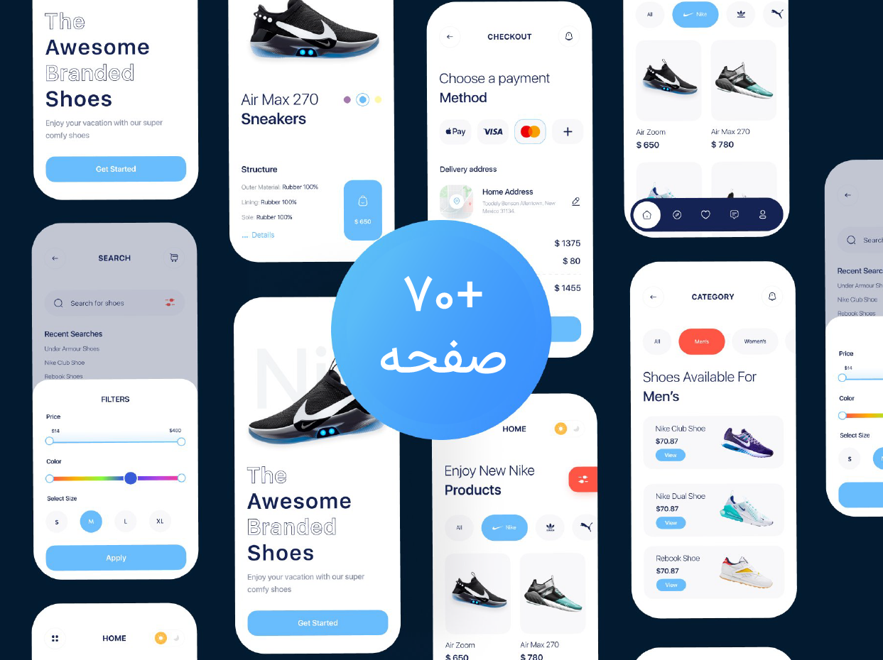 کیت رابط کاربری اپلیکیشن برای فروش و تبلیغ کفش