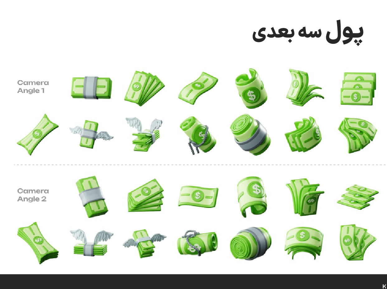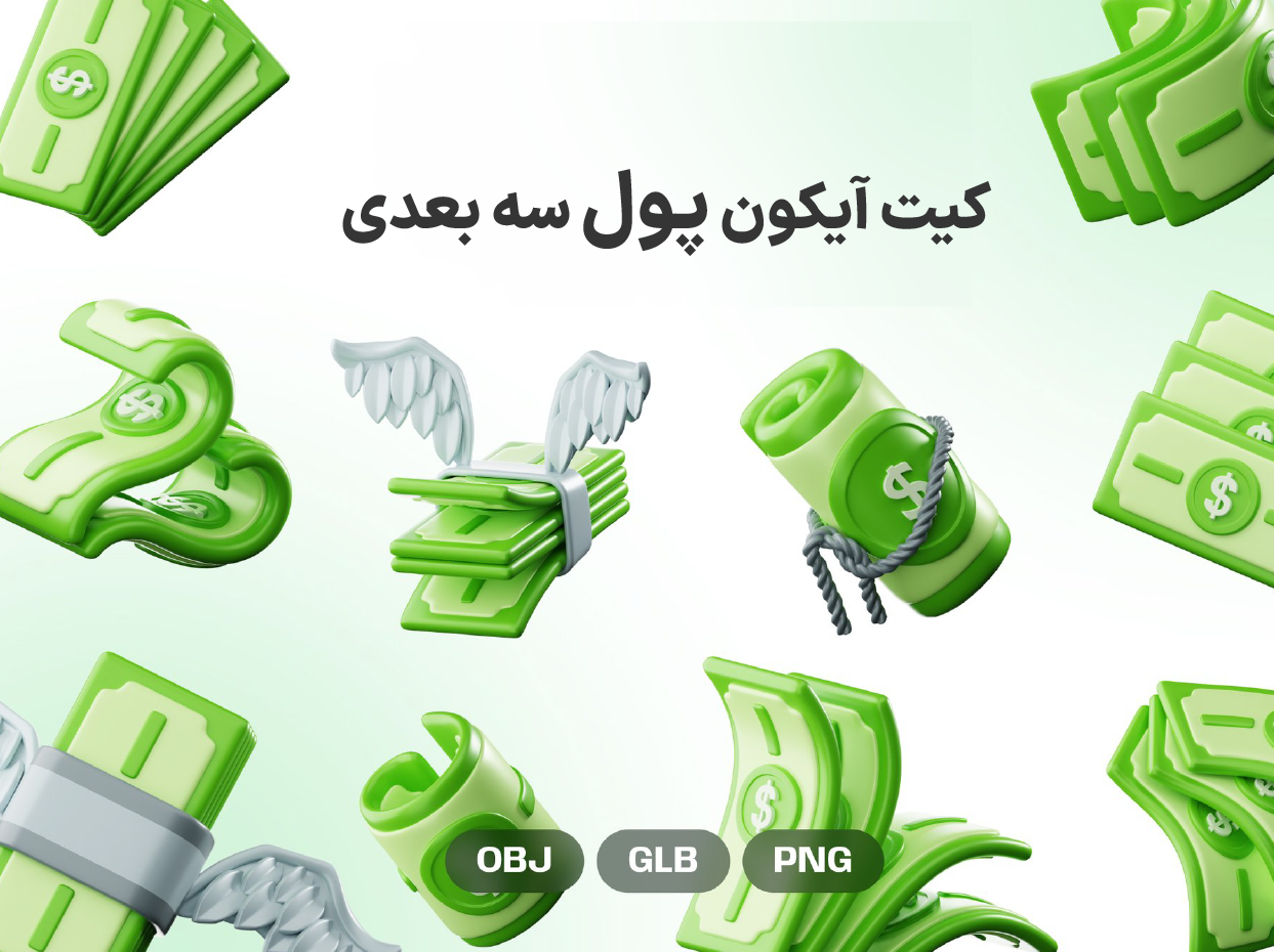 آبجکت و آیکون های سه بعدی اسکناس و پول